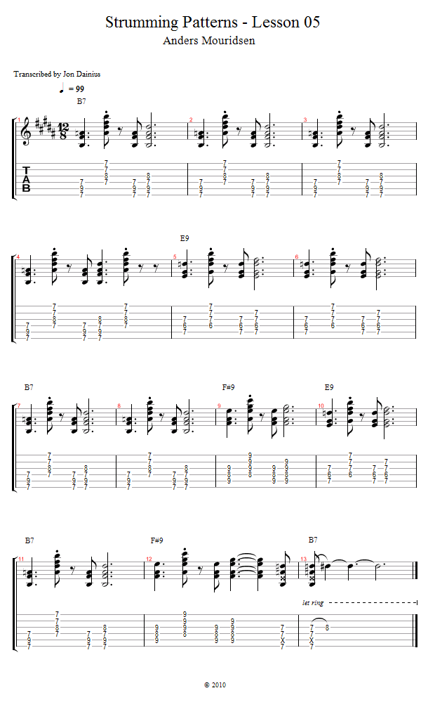 In this tutorial I’ve shown you a couple of my favorite strumming patterns; now it’s time for you to come up with your own. So pick any blues song that you have in your library and see if you can find a cool strumming pattern that works for it.