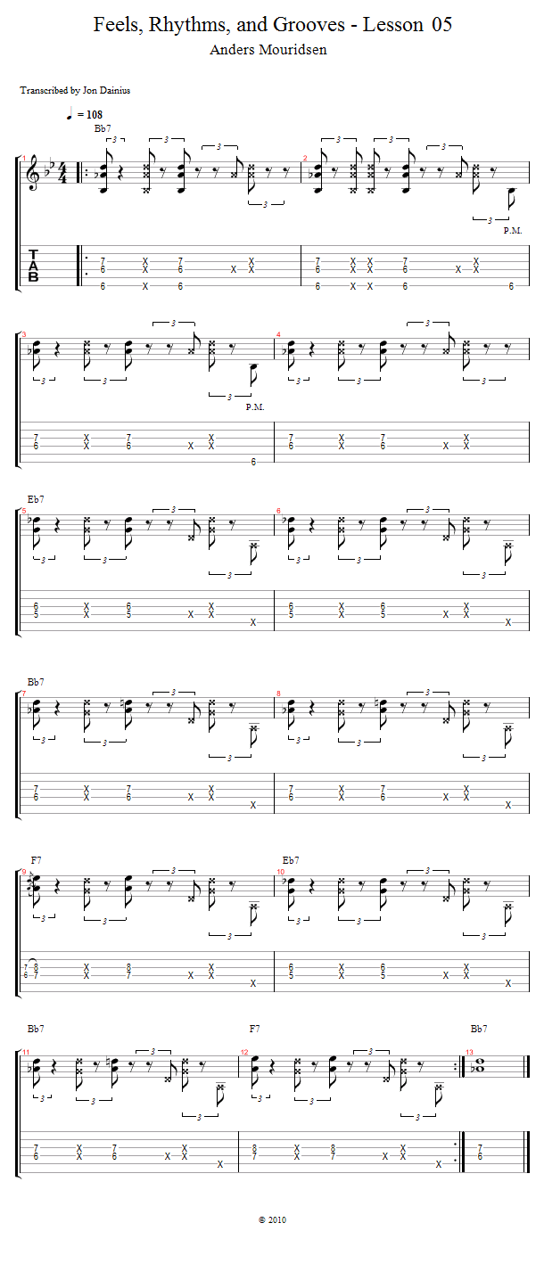In this tutorial we’re going to look at three different rhythmic feels that are used in the blues. For each of these “grooves” I will explain what the drummer and the bass player are most likely to be playing, and I will show you a guitar part that fits it.