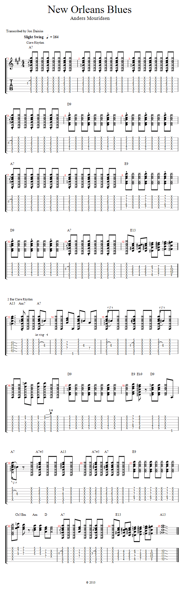 New Orleans blues is another really cool regional blues style that mainly has to do with the way drums, piano, and horns are played. But in this tutorial I’ll give you a brief introduction to the style with it’s Afro-Cuban influence, the jazzy harmony and greasy grooves and finally I’ll demonstrate the sound for you with a groovin’ backing track.